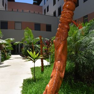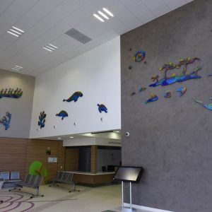 Plus d’une cinquantaine d’artistes, designers et photographes ont accepté de répondre aux appels à candidature du gouvernement de la Nouvelle-Calédonie. Suite à de nombreuses délibérations, les artistes sélectionnés ont travaillé selon des thèmes et des contraintes techniques pour chaque espace (services, salles d’attente, patio, jardins, parkings, etc.). Leurs œuvres uniques et inédites sont exposées dans les espaces intérieurs et extérieurs du Médipôle. Les sculptures, peintures ou photographies invitent chacun – patient, visiteur et personnel – à la quiétude et à l’apaisement.